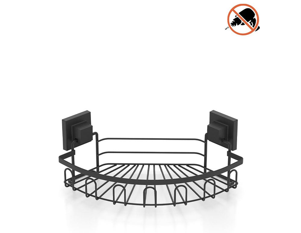Ъглова етажерка за баня на едно ниво, Двойно залепване, Черно