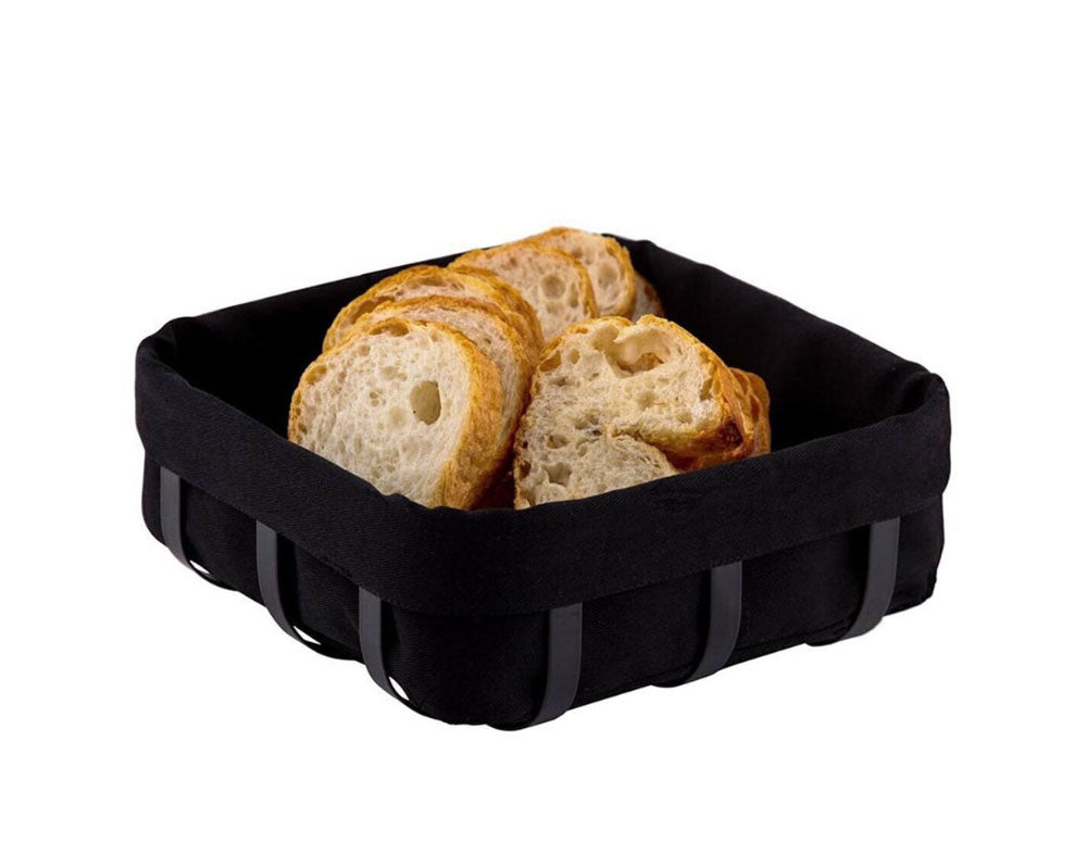 Стилен панер за хляб изработен от метал с черно матово покритие и текстилна кошница. Текстилната кошница може да се сваля, за да се почисти.